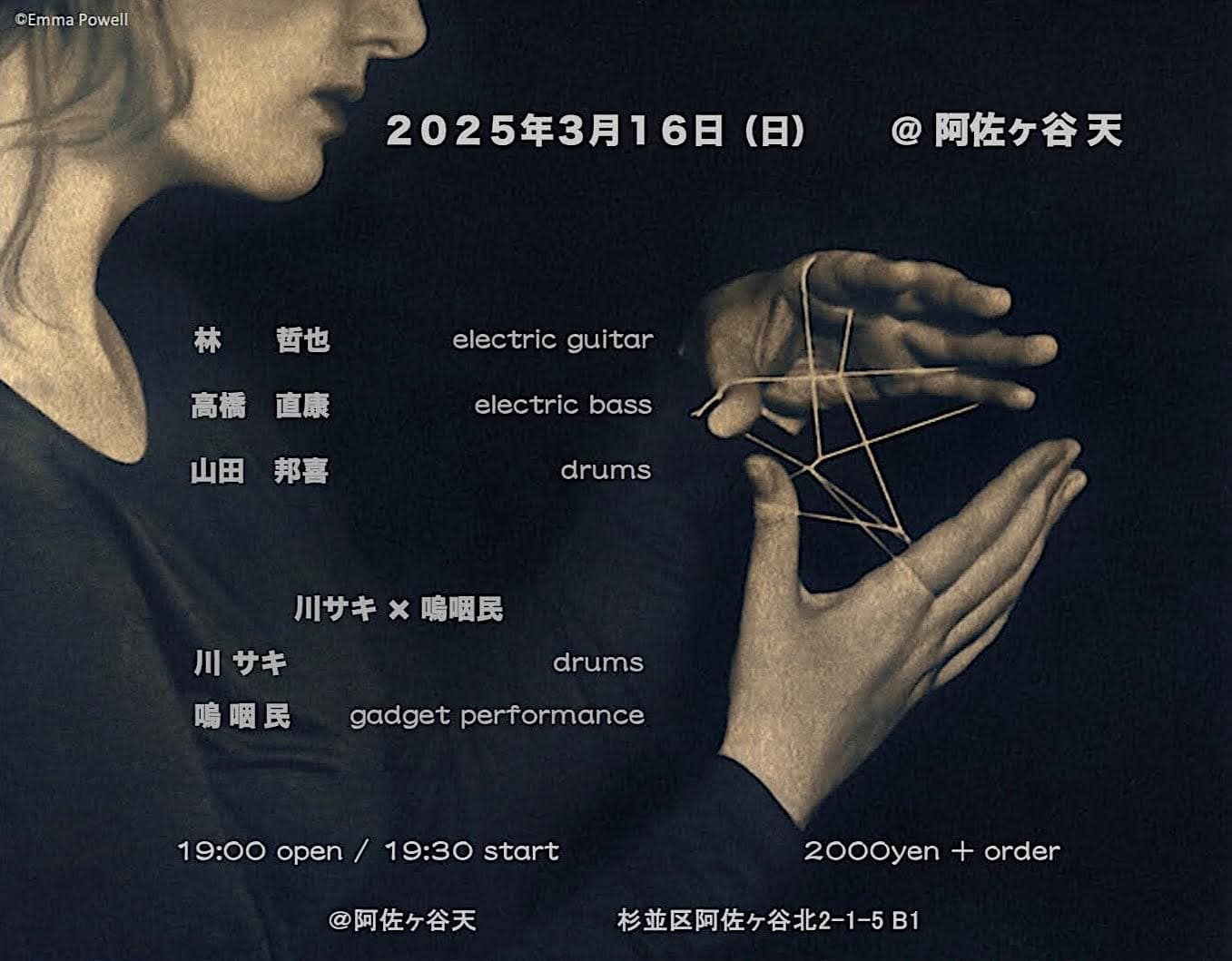 2025.3.16 “TEN JAM” LIVE SCHEDULE 3/16日 阿佐ヶ谷 天“TEN JAM”・林哲也(g)+高橋直康(b)+山田邦喜(dr)・川サキ×嗚咽民open 19:00 / start 19:30charge 2000yen(+1d) 投稿ナビゲーション 2025.3.8 松が谷マーマンズ pre “2マンショー”2025.3.19 bystanders