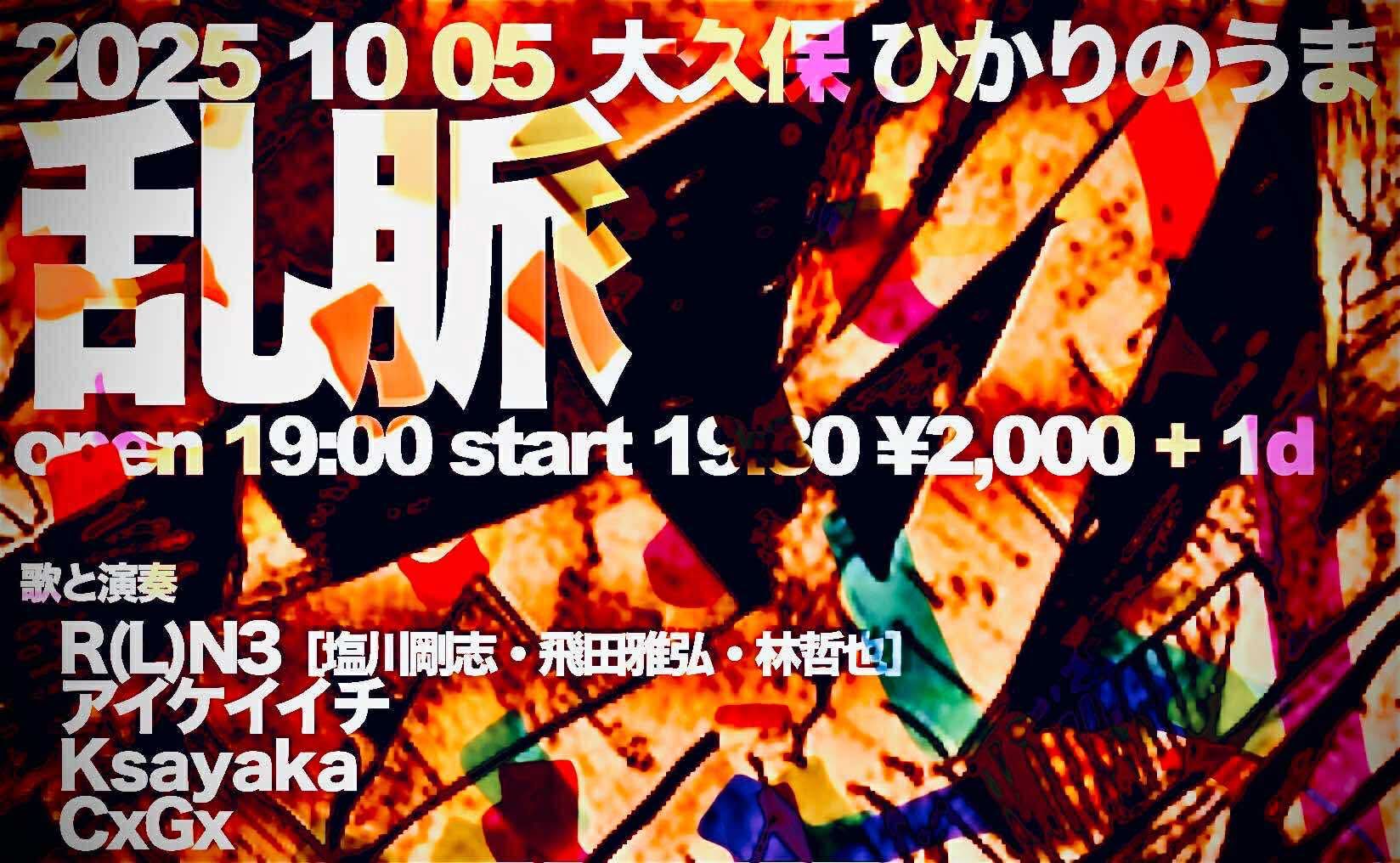 2025.10.5 R(L)N3 CxGx pre “乱脈” LIVE SCHEDULE 10/5日 大久保 ひかりのうまCxGx pre. ”乱脈”open 19:00 start 19:30 ¥2,000+1d 出演・R(L)N3[塩川剛志・飛田雅弘・林哲也]・アイケイイチ・Ksayaka・CxGx 予定通りあの場所で演奏させてもらえることに只々感謝です是非お越しください 投稿ナビゲーション 2025.9.21 SAILORMEN “スタジオドム31周年感謝祭” day22025.10.9 bystanders